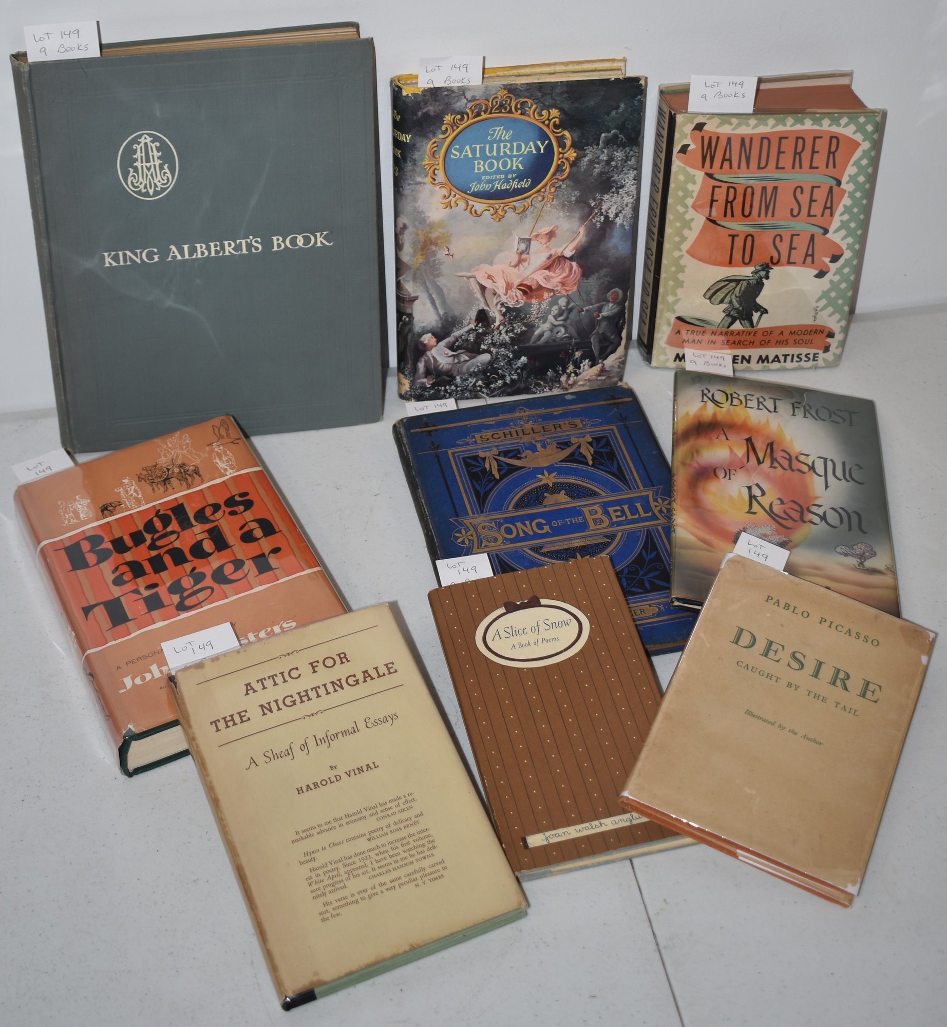 DESIREPABLO PICASSO, 1950, 1ST ED W/ DJ - ATTIC FOR THE NIGHTNGALE BU VINAL, 1934 - SIGNED W/ DJ - THE SATURDAY BOOK 23, 1963, 1ST AMERICAN ED - KING ALBERTS BOOK C 1914