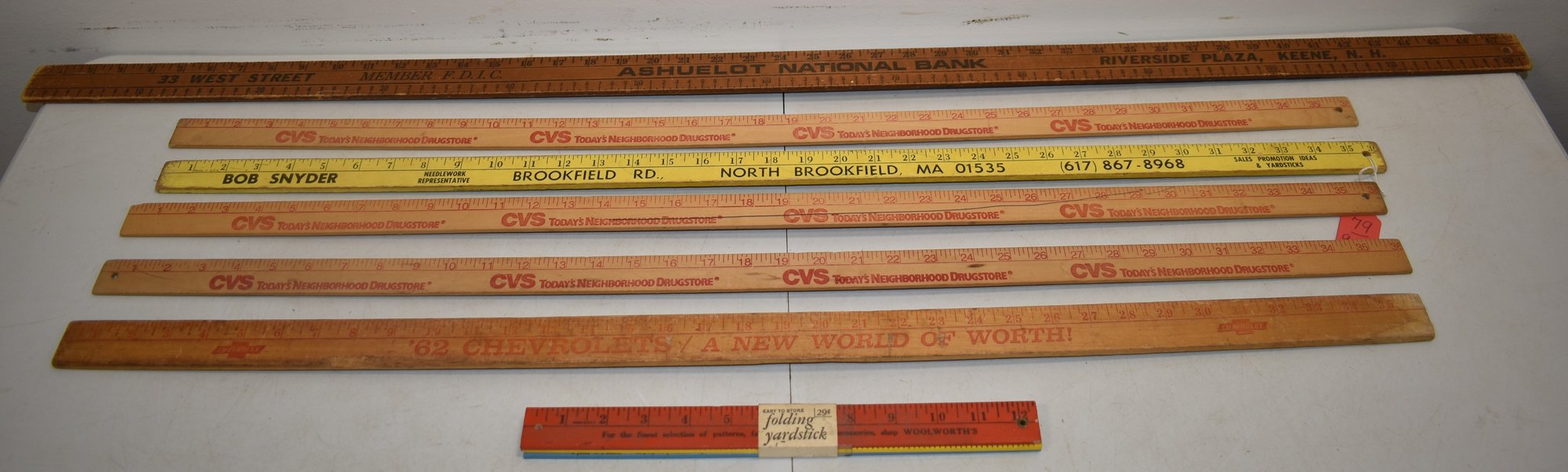 (3) RULERS & (5) ADVERTISING YARDSTICKS & (1) 48" ADVERTISING RULER - WEAR
