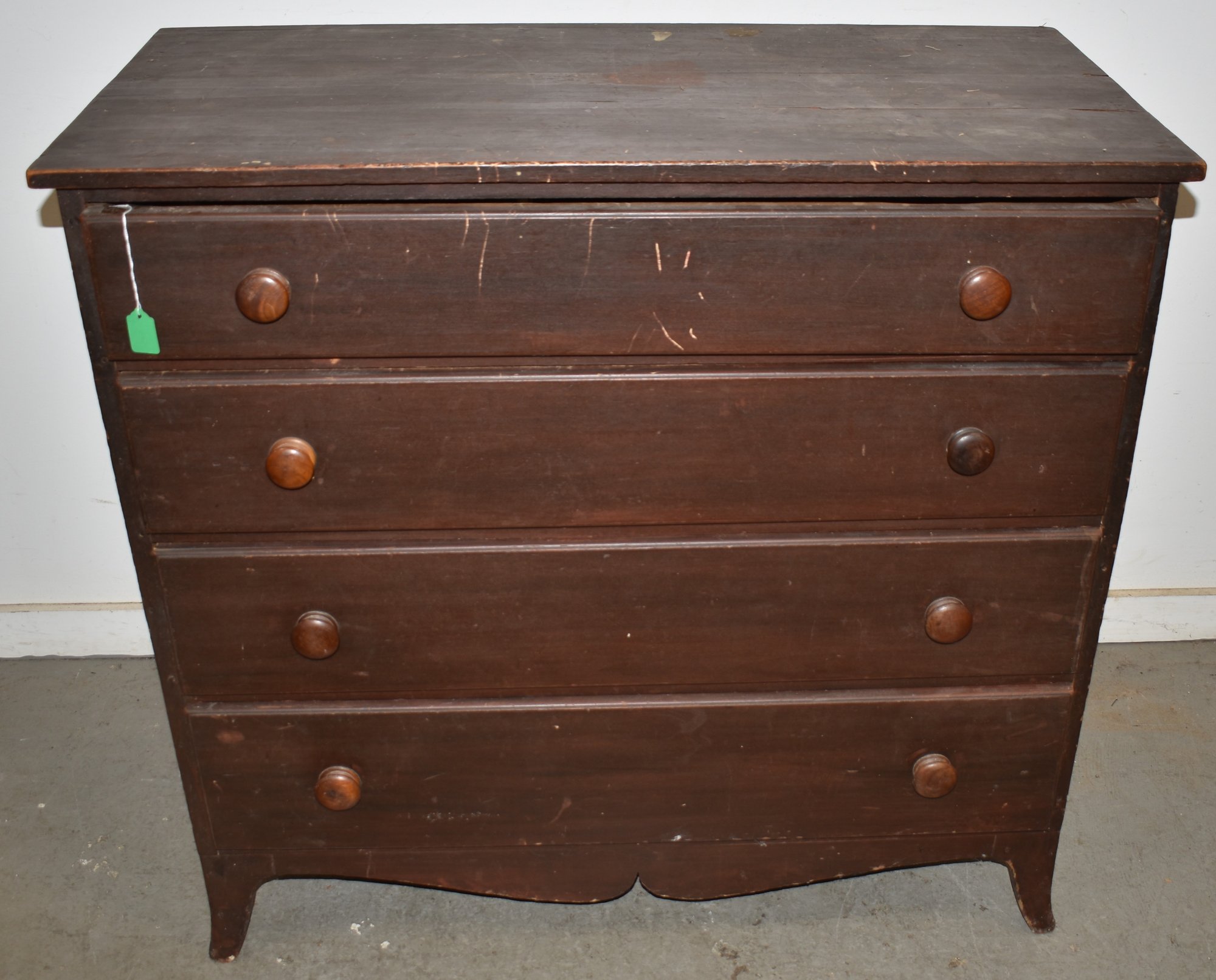 COUNTRY HEPPLEWHITE 4 DRAWER IN OLD BROWN PAINT - 39" T - TOP 41" X 20" - WEAR & IMPERFECTIONS