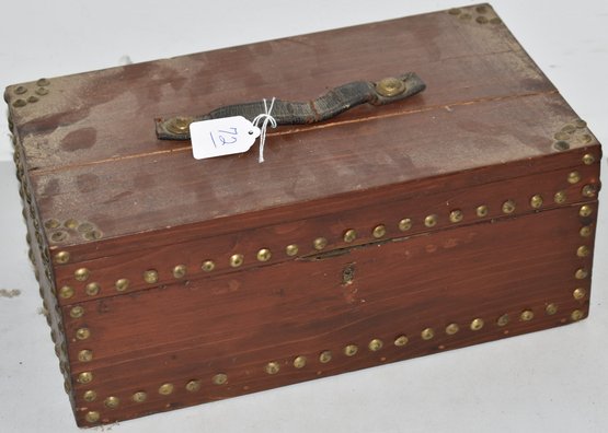14" L X 7 3/4" W X 5 3/4 "T - SPLITS IN TOP - WEAR & IMPERFECTIONS