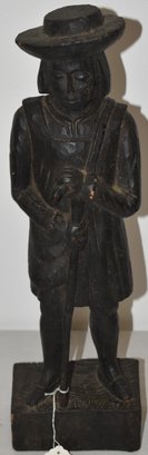 15 1/2" CARVED WOODEN FIGURE OF COLONIAL MAN STANDING W/ CANE - WEAR