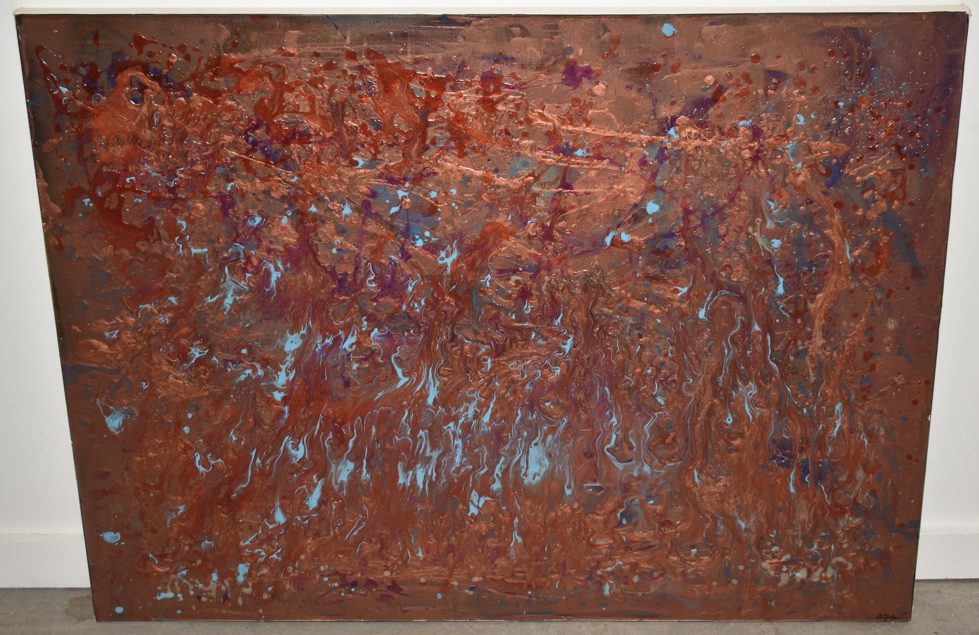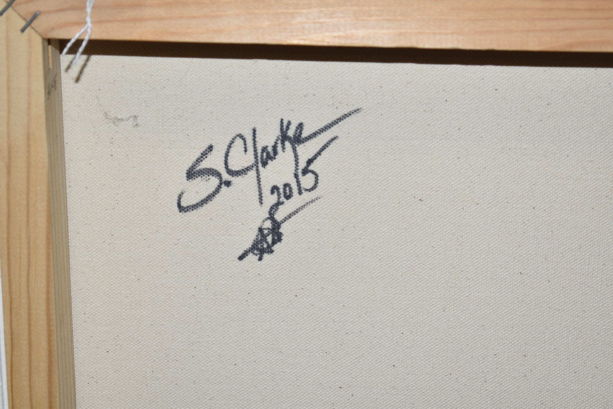 PAINTING ON CANVAS SIGNED S. CLARK 2015 ON BACK - 36" X 48" - UNFRAMED - WEAR