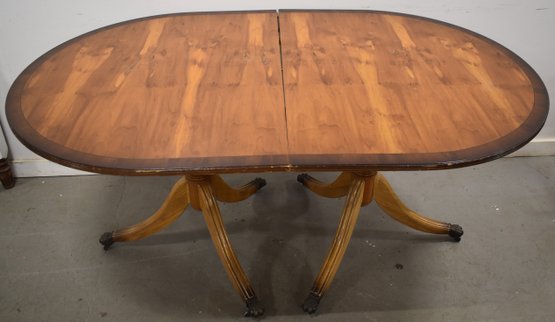 MIZED WOODS INLAID DINNING TABLE W/ CENTER LEAVE - 29 1/2" T - 85 1/2" W/ LEAVE - 39 1/2" W - WEAR & IMPERFECTIONS