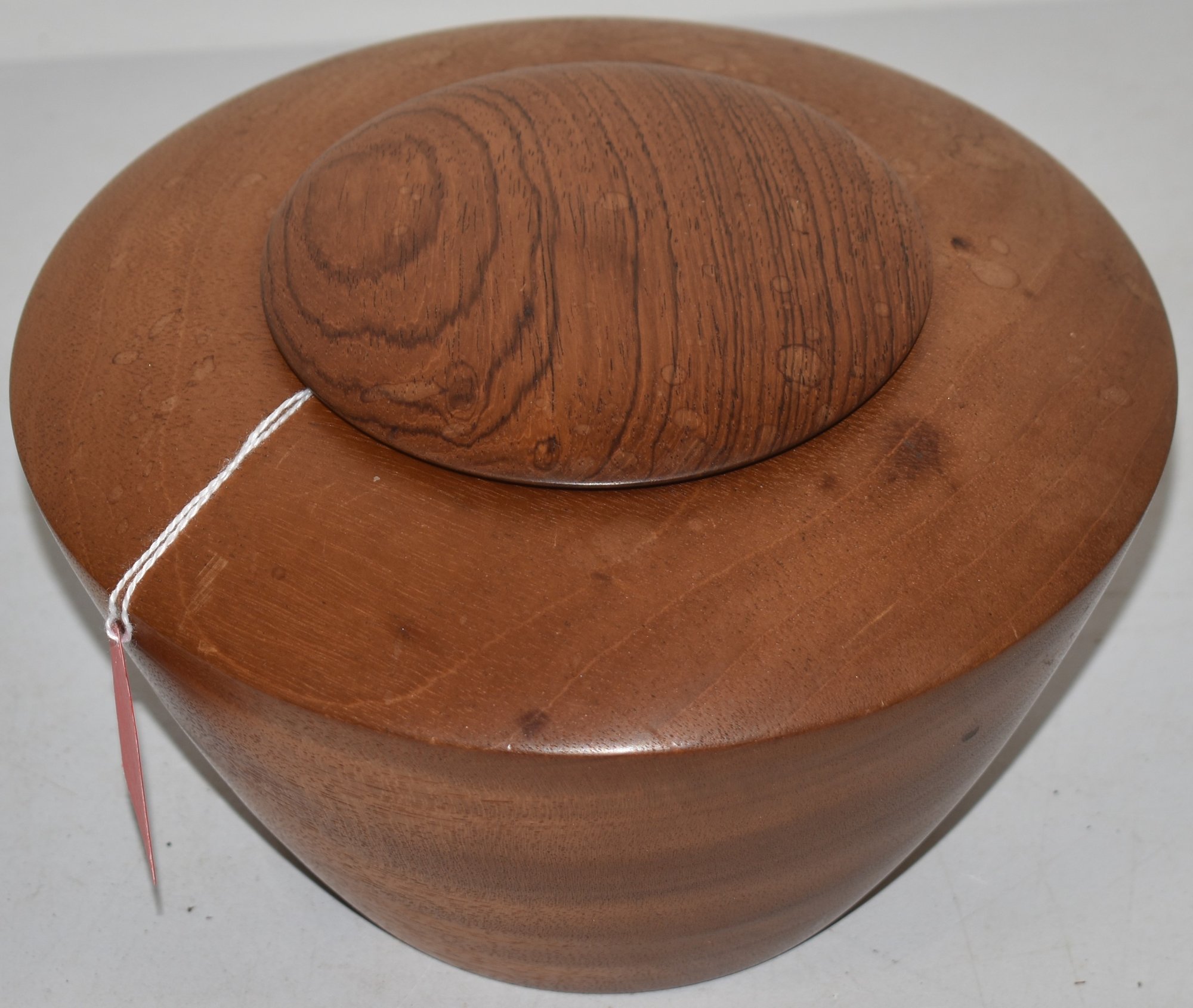 4 1/2" ROSEWOOD JAR W/ COVER - 7 1/2" DIA - WEAR & IMPERFECTIONS
