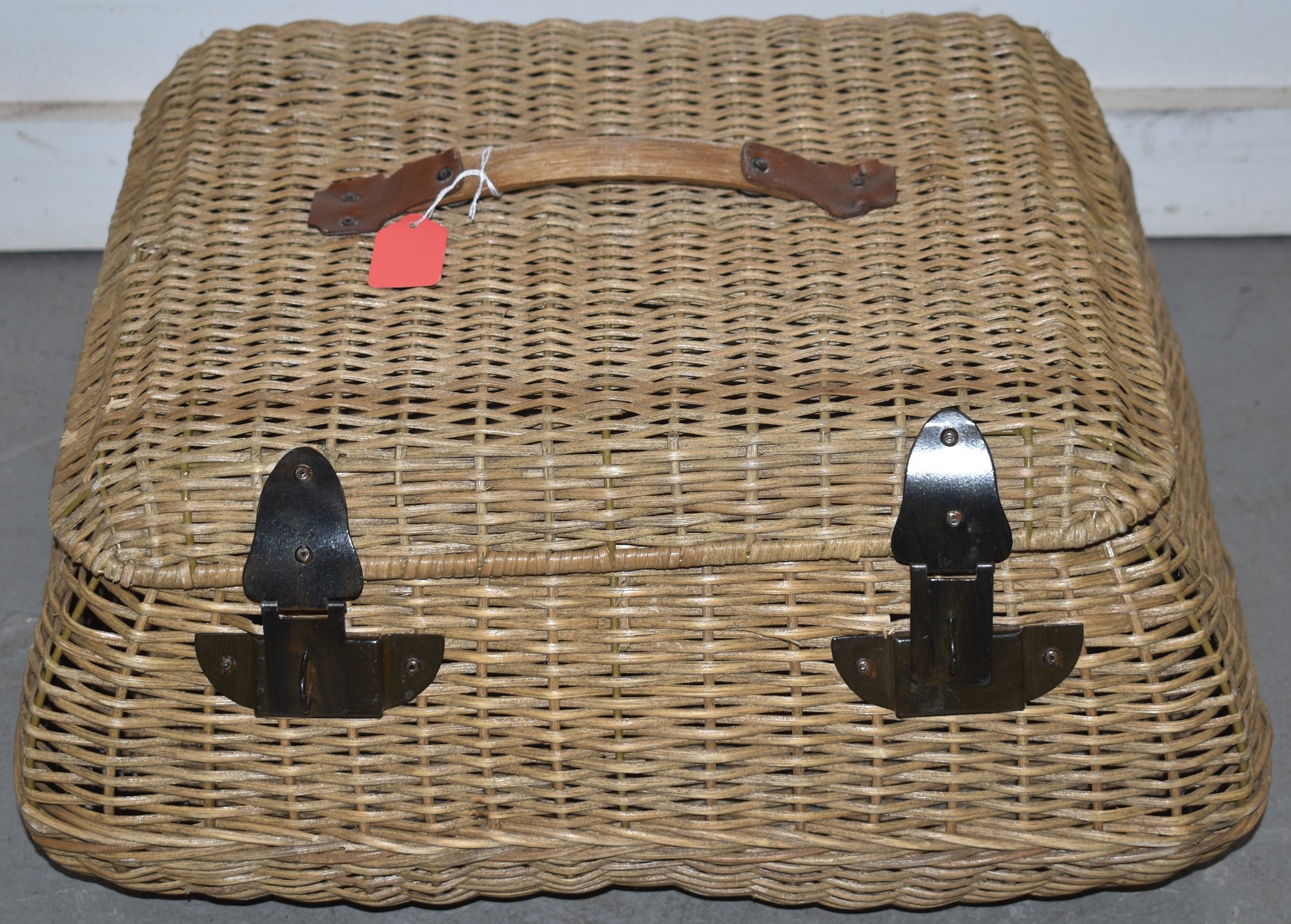 20TH CENT CONTEMPORY FLAT SQAURE LIDDED BASKET - 21" W X 18" D X 11" T - IMPERFECTIONS