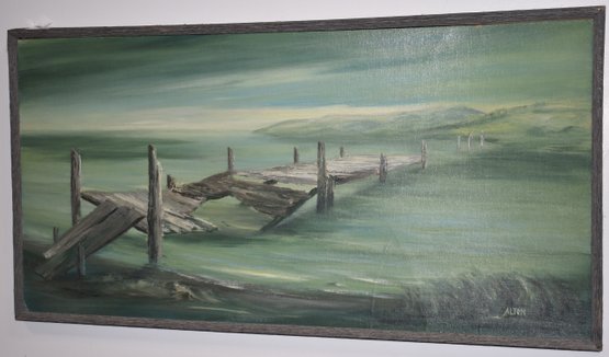 SIGNED ALTON LWOER RIGHT - 14 1/2" X 29 1/2" - SIGNED R/ DENNIS ALTON & TITLED DOCK IN A BAY ON BACK - WEAR & IMPEREFECTIONS