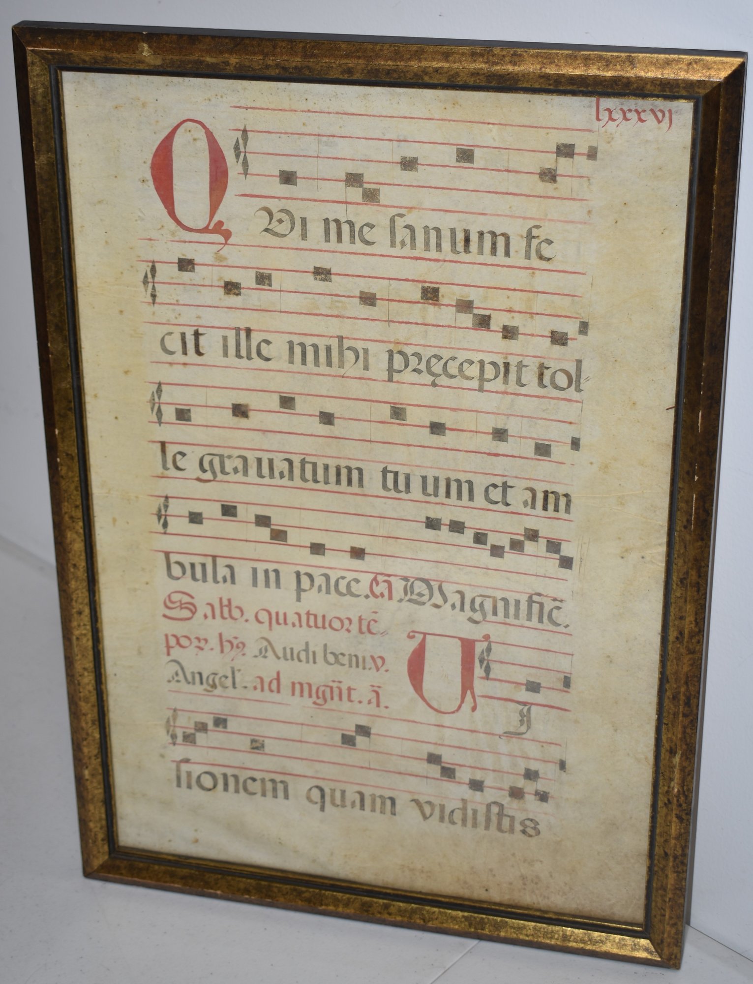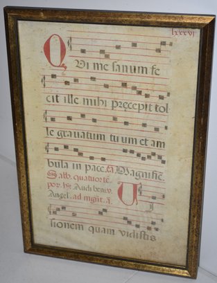 EARLY LATIN FRAMED MUSIC - INCUNABULA - 19 1/2" X 13" - TONING & WEAR