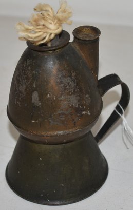 19TH CENT PAINTED TIN WHALE OIL LAMP W/ DOUBLE BURNER - 4 1/2" T - WEAR