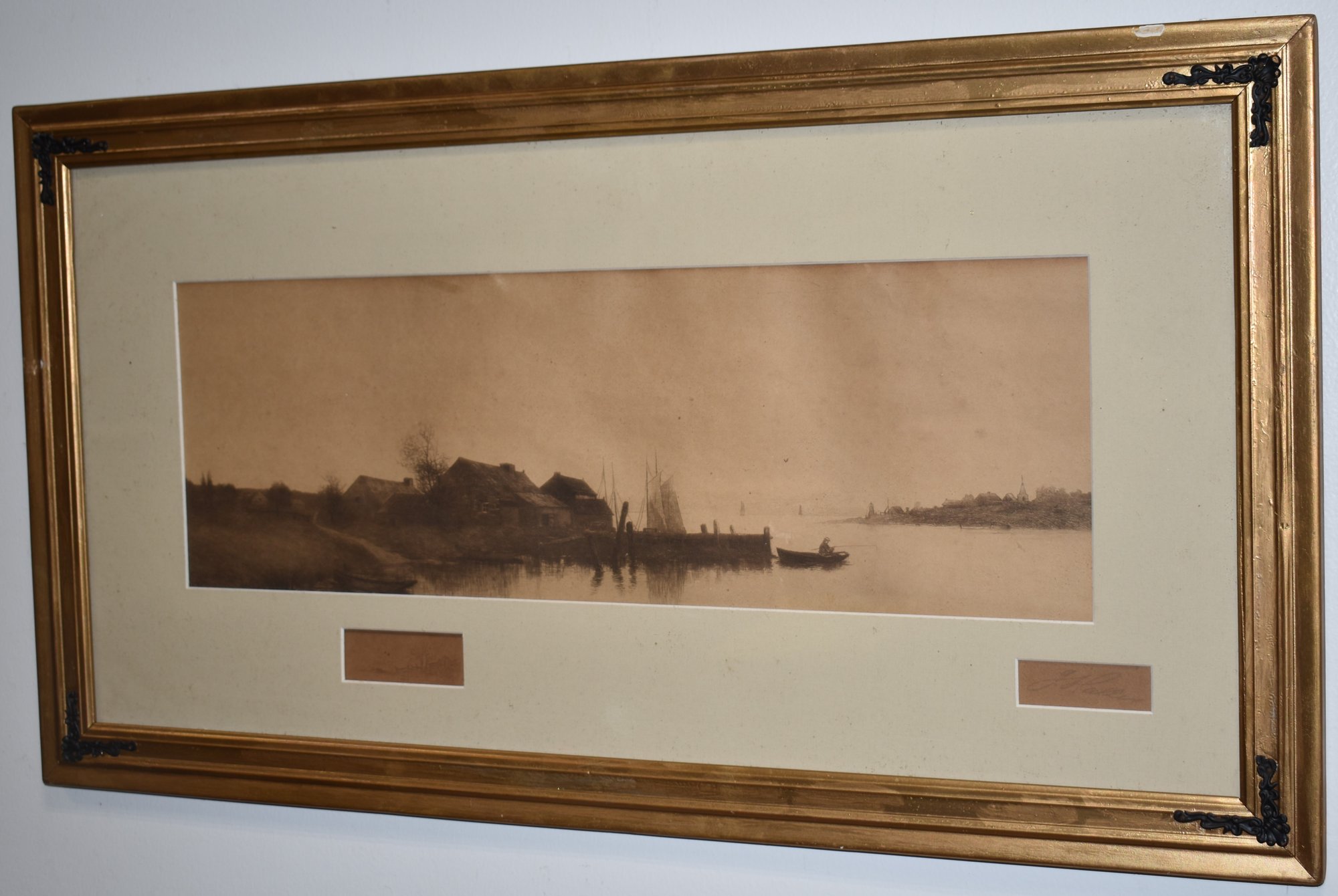 SIGNED J. HALLEN LWER RIGHT - MATTTED FRAMED - 6" X 18 1/2" SIGHT - TONING