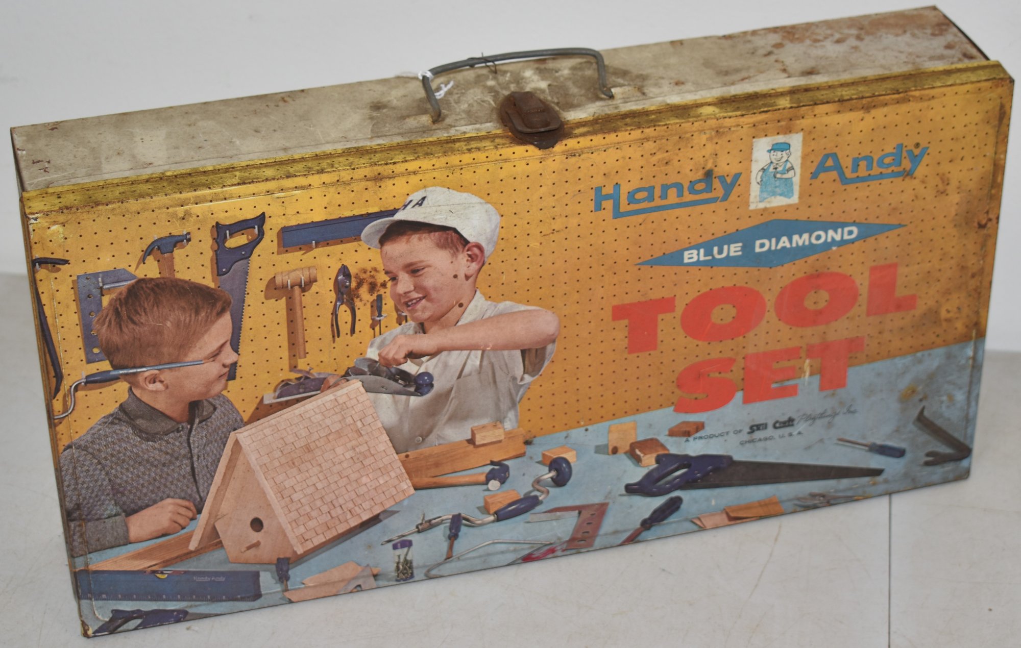 SOME TOOLS & ORIGINAL TIN LITHO BOX - WEAR & OXIDATION