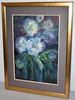 BLUE HYUDRANGEAS - SIGNED SCHINK LOWER LEFT - 12" X 14 1/2" SIGHT - AMTTED & FRAMED - IMPERFECTIONS