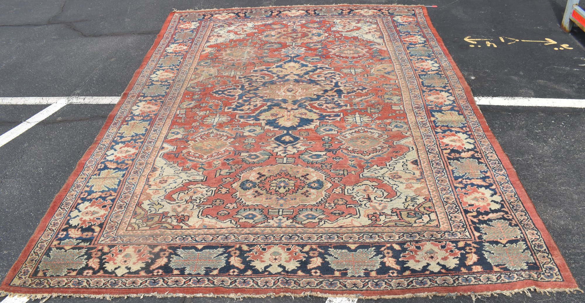 LATE 19TH EARLY 20TH CENT HERIZ ORIENTAL ROOM SIZED CARPET - 126" X 89" - WEAR, SOILNIG & IMPERFECTIONS