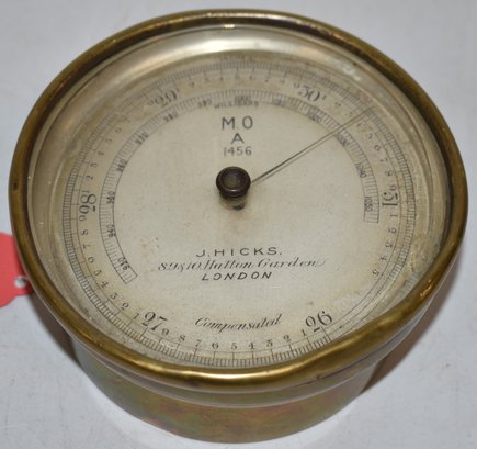 4 3/4" DIA - DIAL READS J.HICKS 9 & 10 HATTON GARDEN LONDON - DENTS, WEAR & IMPERFECTIONS