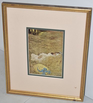 BOOK ILLUSTRATION PRINT BY JESSIE WILCOX SMITH - 7" X 4 1/2" SIGHT - MATTED & FRAMED - NO GLASS & WEAR