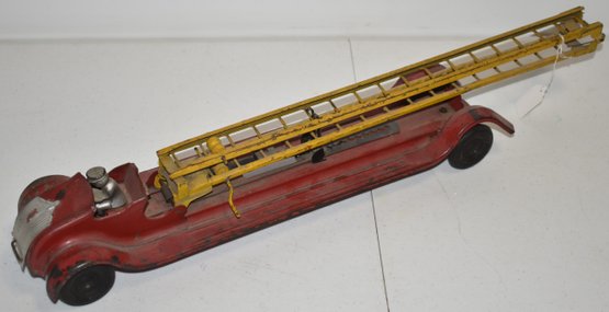 23 1/2" RED & YELLOW AERIAL LADDER TRUCK - KINGSBURY TOY KEENE NH - WEAR