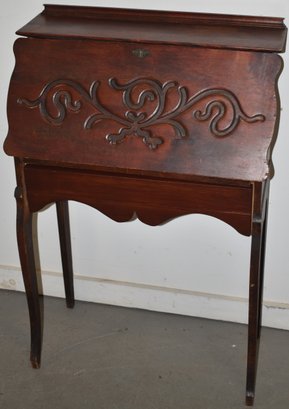 EARLY 20TH CENT MAPLE LADIES FALL FRONT WRITING DESK - 41" T X 26 1/2" W X 13" D - WEAR & IMPERFECTIONS