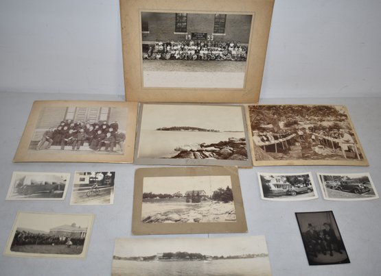 (5) CABINET CARDS, (1) PANORAMIC, (3) AUTOMOBILE PHOTOS ETC - 12 PC. - WEAR