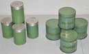LOT (9) VINTAGE MID 20TH CENT GREEN SPICE TINS - (4) 2 1/2" T X 2 1/2" DIA & (5) 2" D X 3" T TINS - WEAR & IMPERFECTIONS