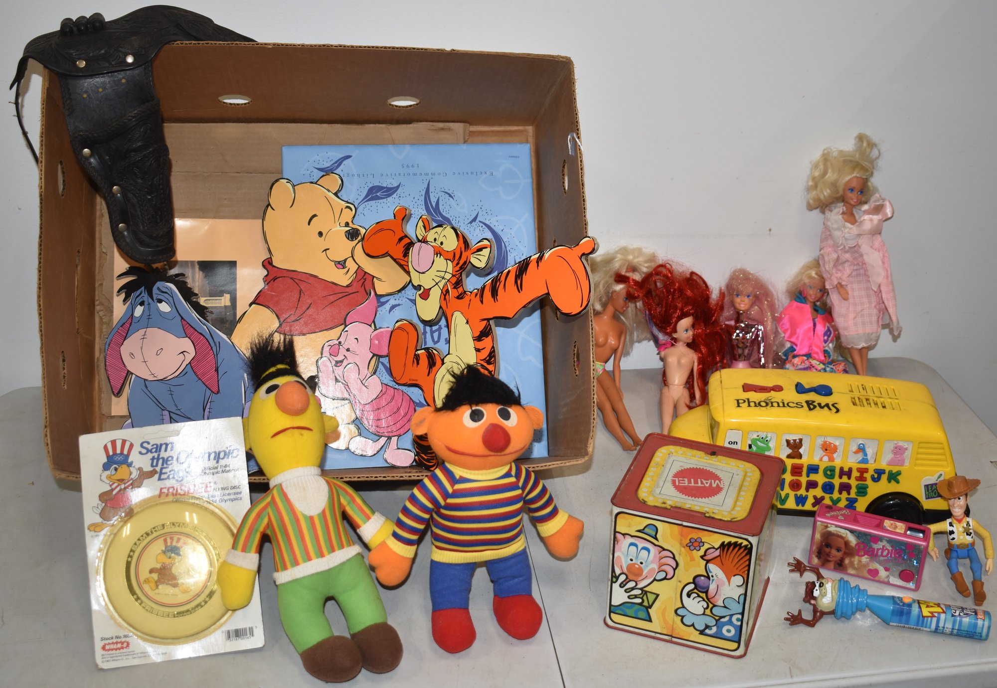 BARBIES, JACK IN BOX, DOLLS, WINNIE THE POOH FIGURES ETC - WEAR