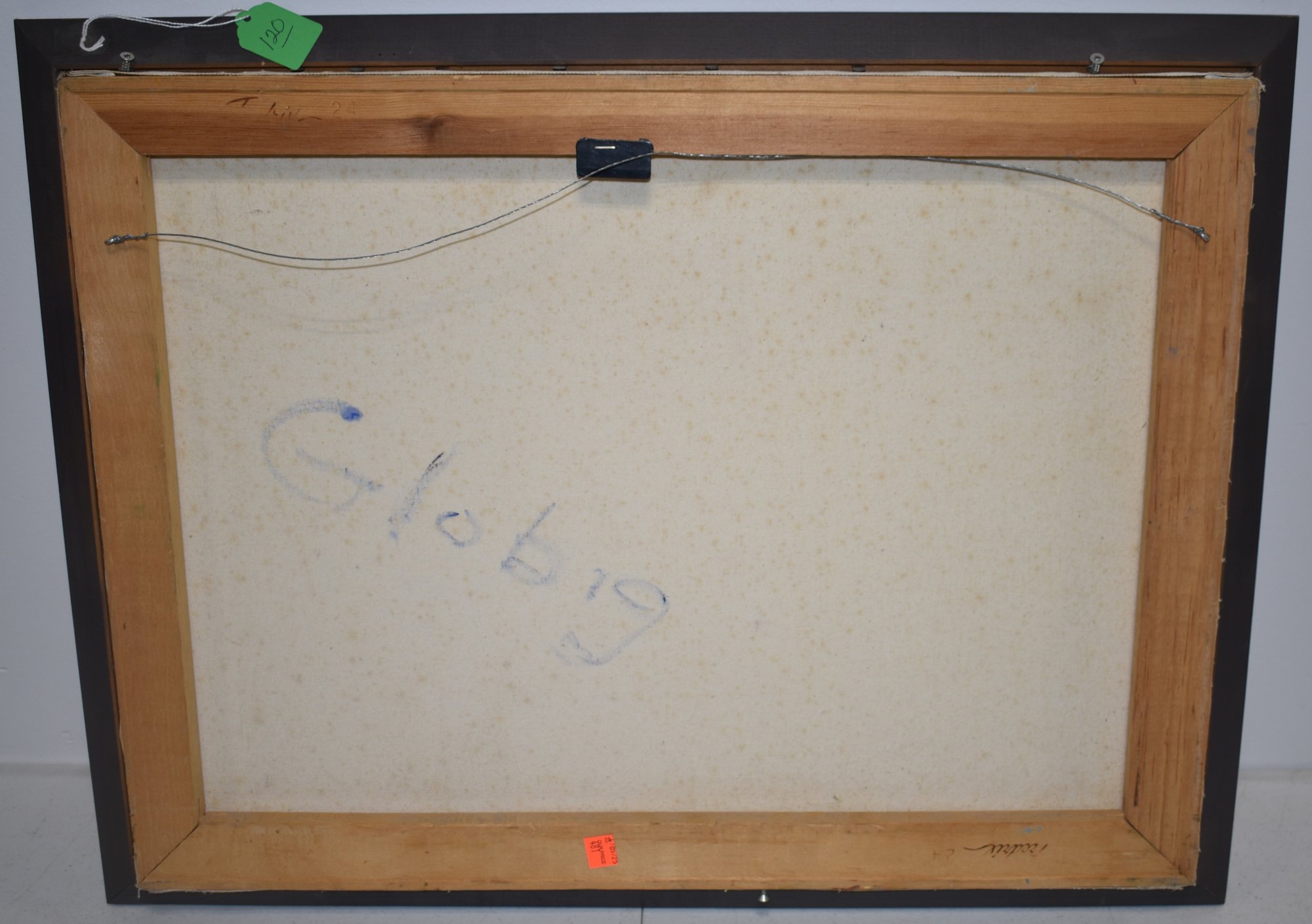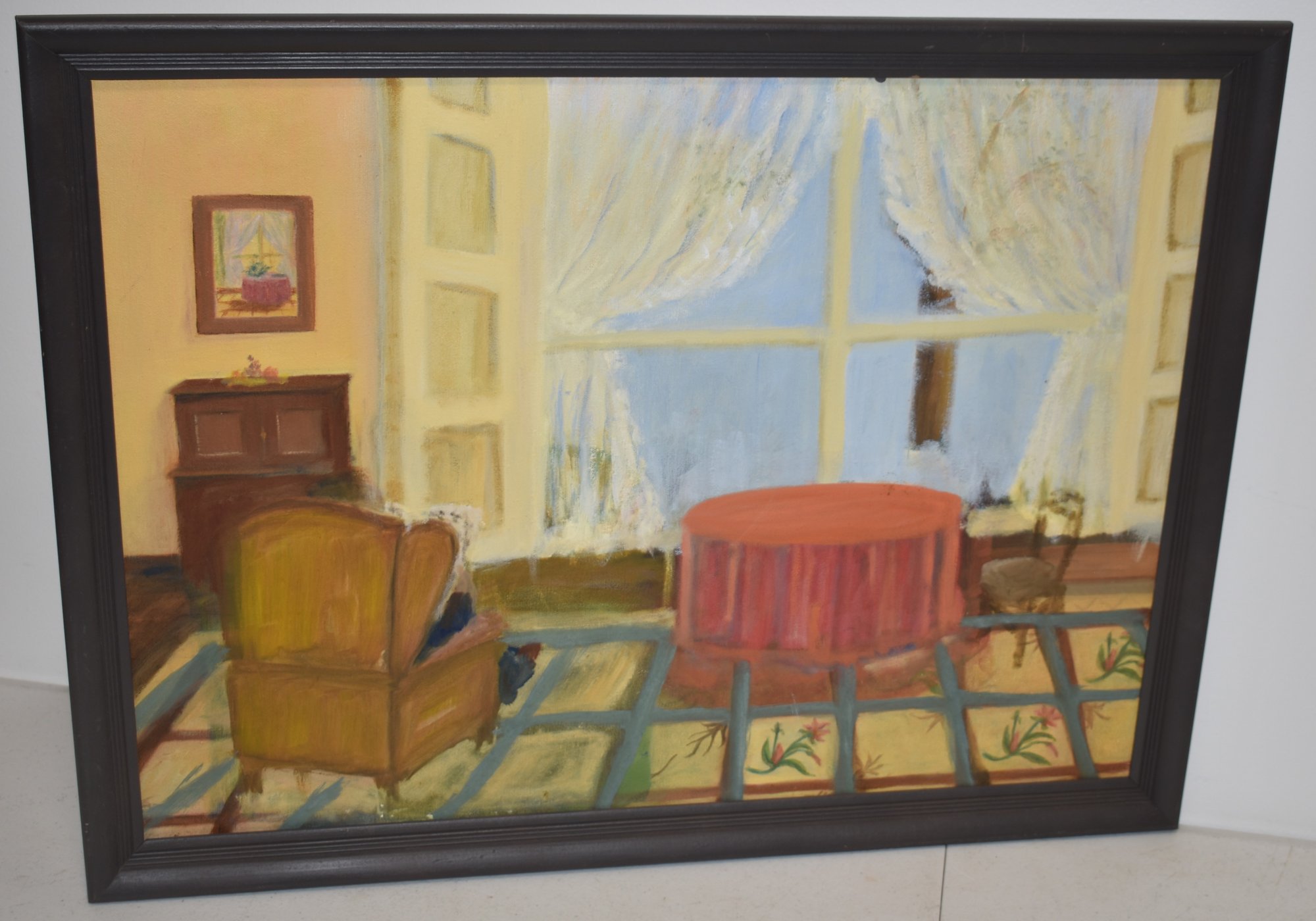 INTERIOR ROOM, LOCKING OUT WINDOW UNSIGNED - ATTRIBUTED - 17 1/2" X 23 1/2" SIGHT - FRAMED - WEAR