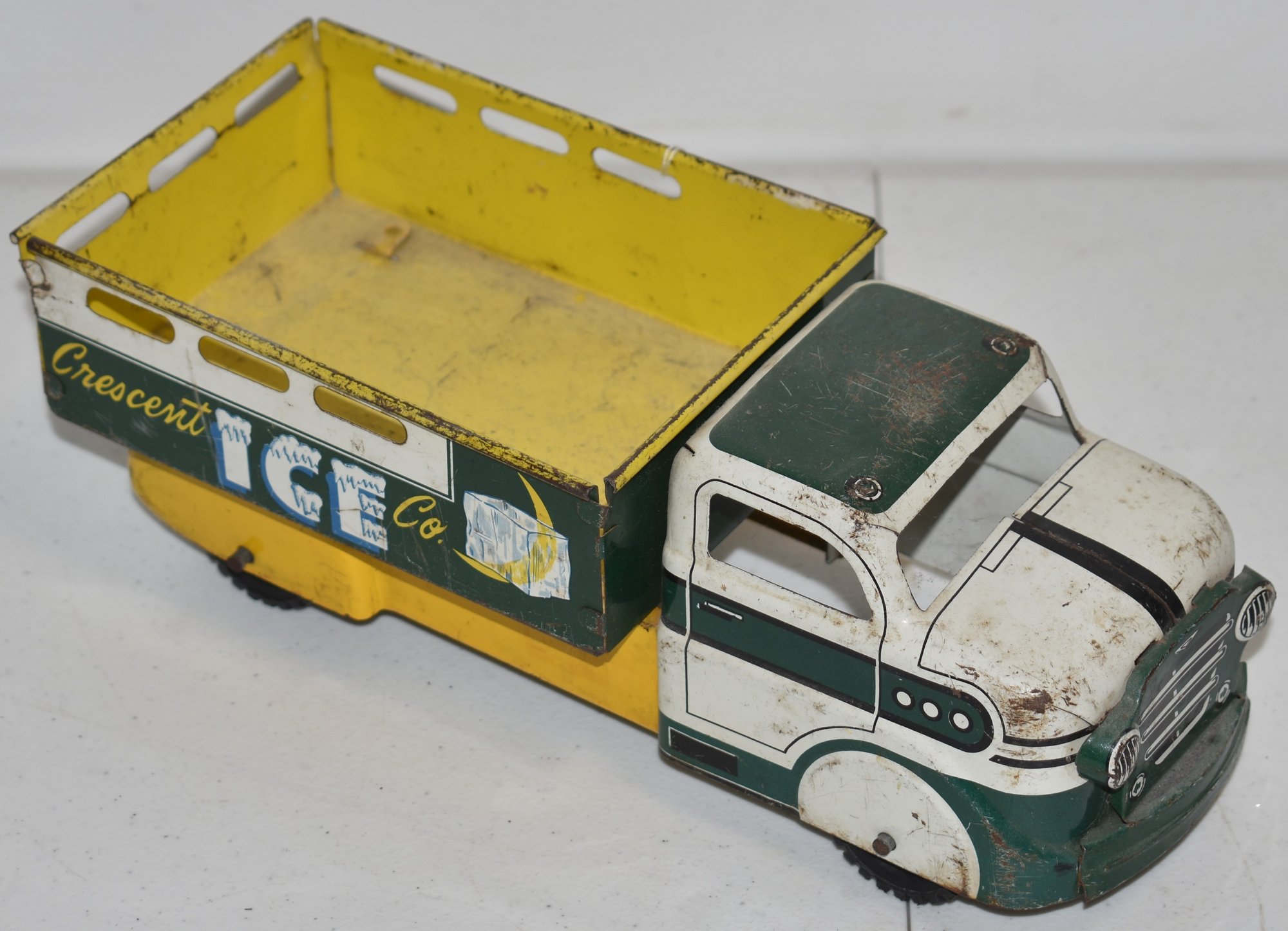 11" TIN LITHO CRESENT ICE. CO. DELIVERY TRUCK BY MARX TOYS - WEAR