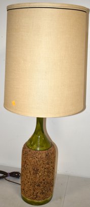 GREEN HIGHGLAZE POTTERY & CORK MID CENT MODERN TABLE LAMP W/ SHADE - 40" T - WEAR