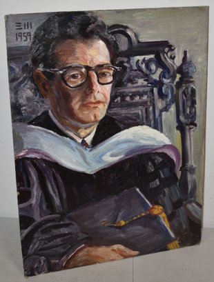 20TH CENT OIL ON CANVAS BOARD OF SCHOLAR SEATED - SIGNED & DATED UPPER LEFT (SEEP HOTO) 24" X 18" - WEAR & IMPERFECTIONS