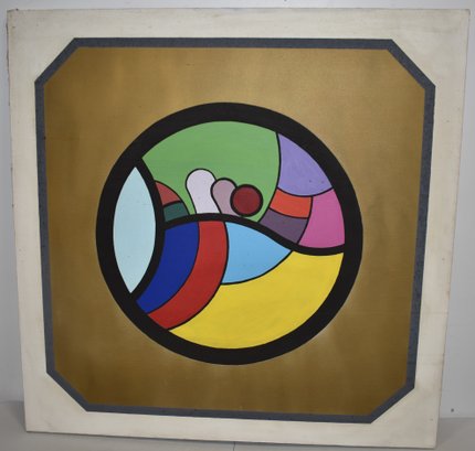 OIL ACRYLIC ON VINYL ON CANVAS - 36" X 36 1/4" - UNFRAMED - UNSIGNED - ATTRIBUTED TO PAUL LAFFOLEY FROM SAME ESATE AS LOT 47 - STYLE OF PAUL LAFFOLEY OUTSIDER ART - STRETCHER - STAMPED HARVARD SQAURE ART CENTER 1099 MASSACHUESETTS AVE CAMBRIDGE MASS - HOSUE FRESH - SOILING, WEAR & IMPERFECTIONS