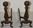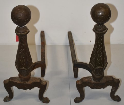 PR. 20TH CENT ARTS & CRAFTS ANDIRONS - 18 1/2" T X 19 1/2" D - WEAR & IMEPRFECTIONS