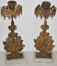 15 3/4" VICTORIAN GIRONDALS W/ BASKET OF FLOWERS ON MANTLE PLINTH BASES - WEAR & IMPERFECTIONS - MISSING PIECE