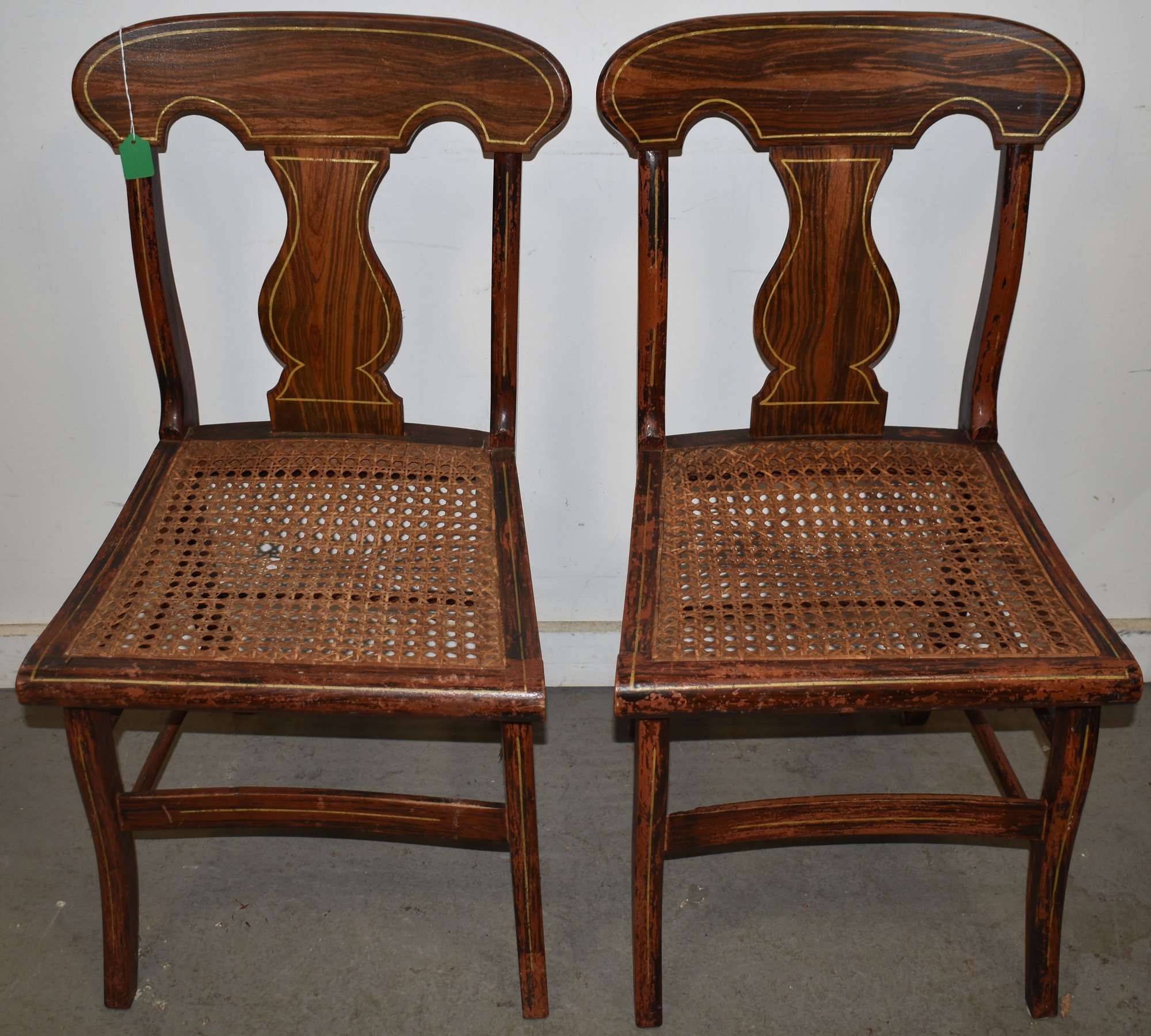 CANE SEATS IN OLD GRAIN PAINT W/ GILT HIGHLIGHTS - 34" T - WEAR, DAMAGE & IMPERFECTIONS