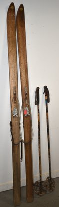 PR. VINTAGE WOODEN SKIS & POLES