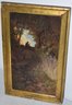 19TH CENT PRANG CHROMO GOLDEN EVENING AFTER C. SPITZWEG - LI PRANG & CO LABELS ON BACK - 15 3/4" X 8 3/4" SIGHT IN A GILT FRAME - WEAR