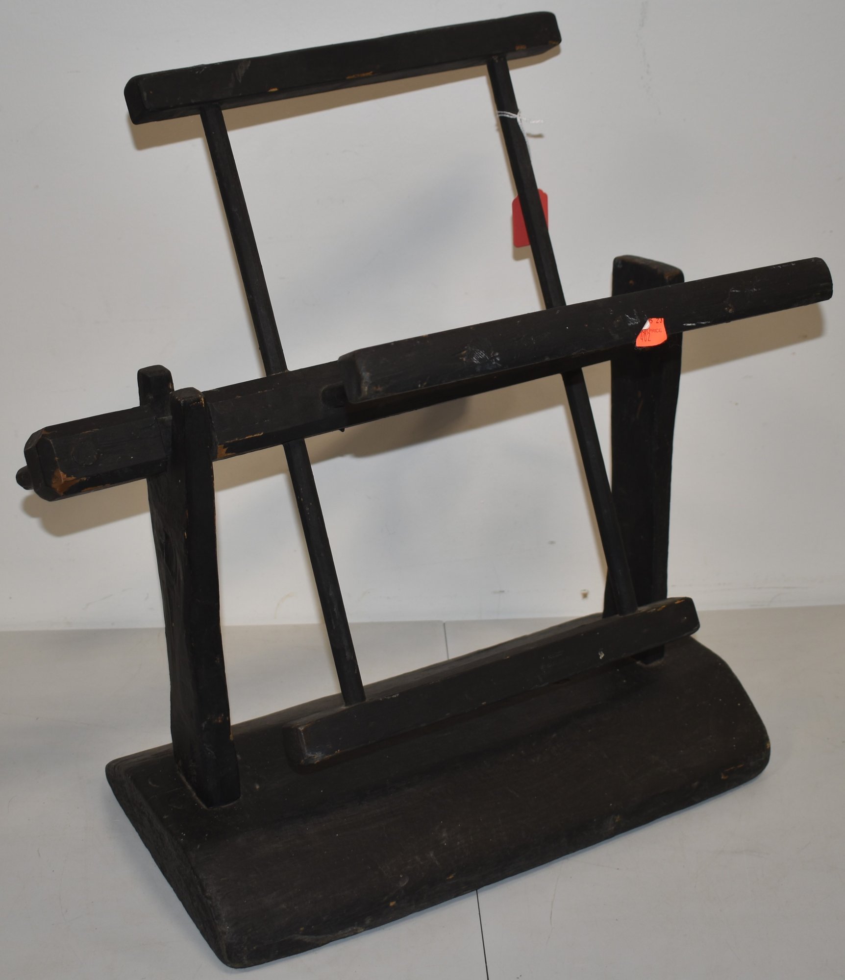 PRIMATIVE PAINTED YARN WINDER IN BLACK PAINT - 23" T X 20" L X 18 1/2" W - WEAR & IMPERFECTIONS