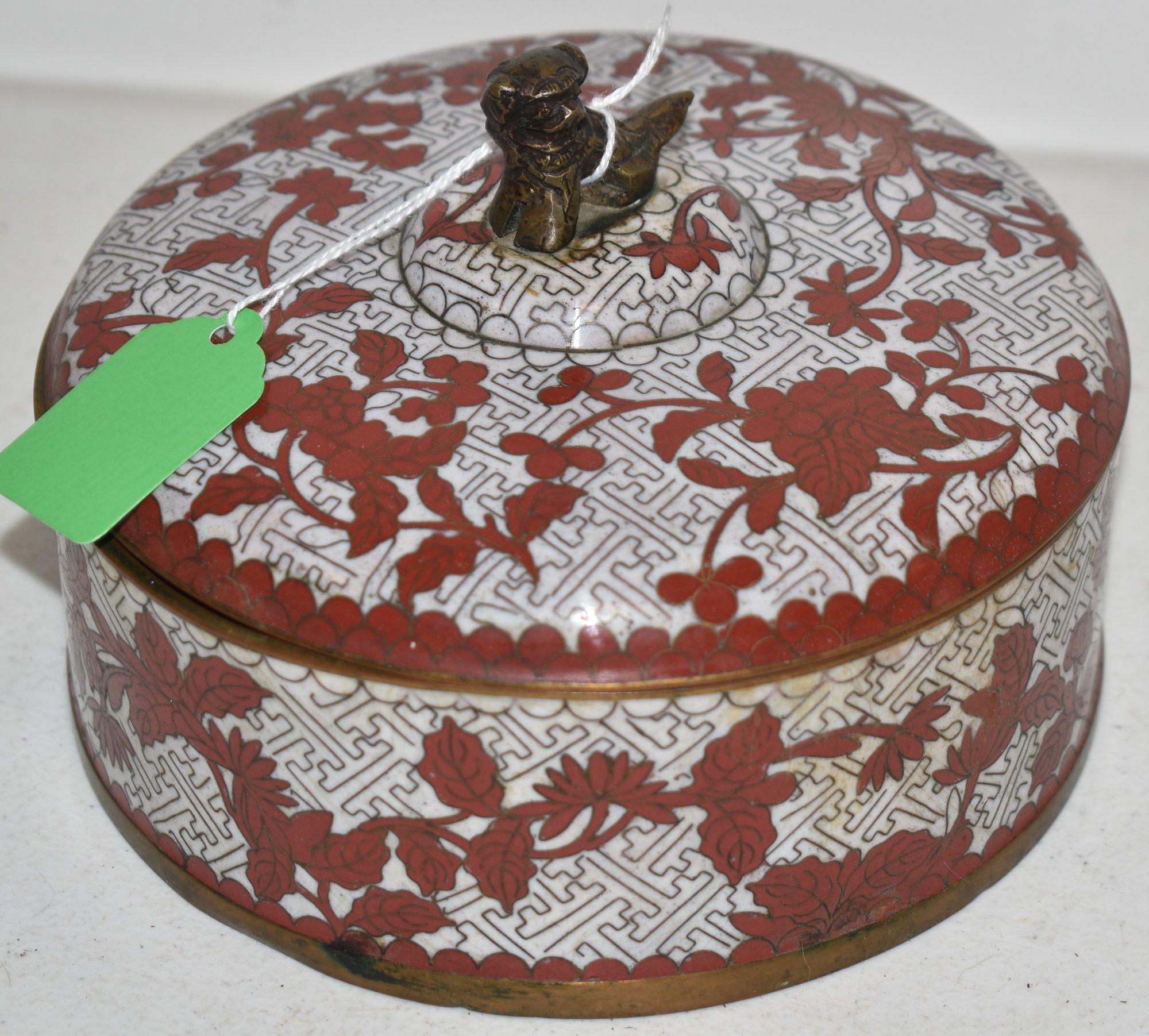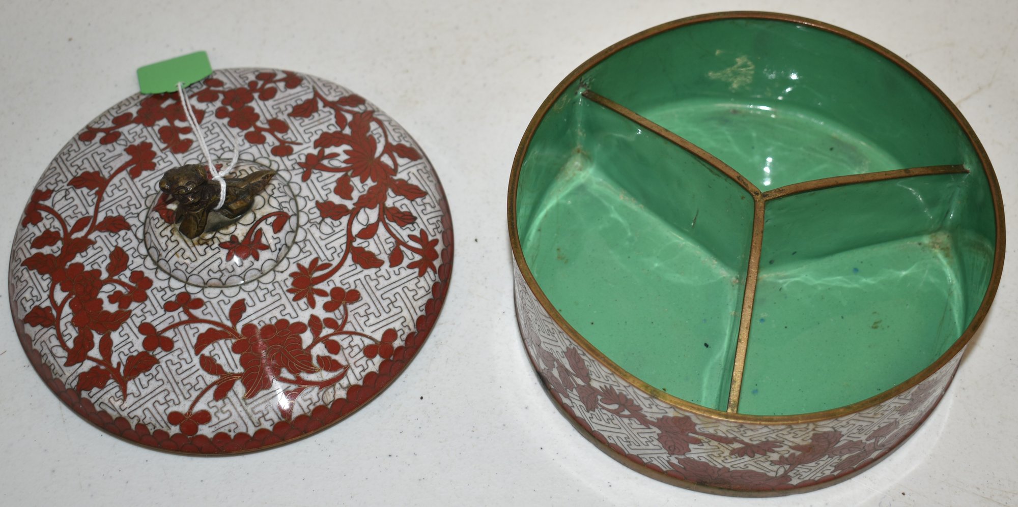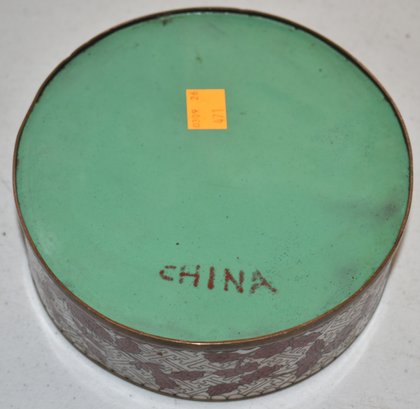 6 1/2" ROUND CHINESE CLOISENE COVERED BOX W/ DIVIDED INTERIOR - WEAR