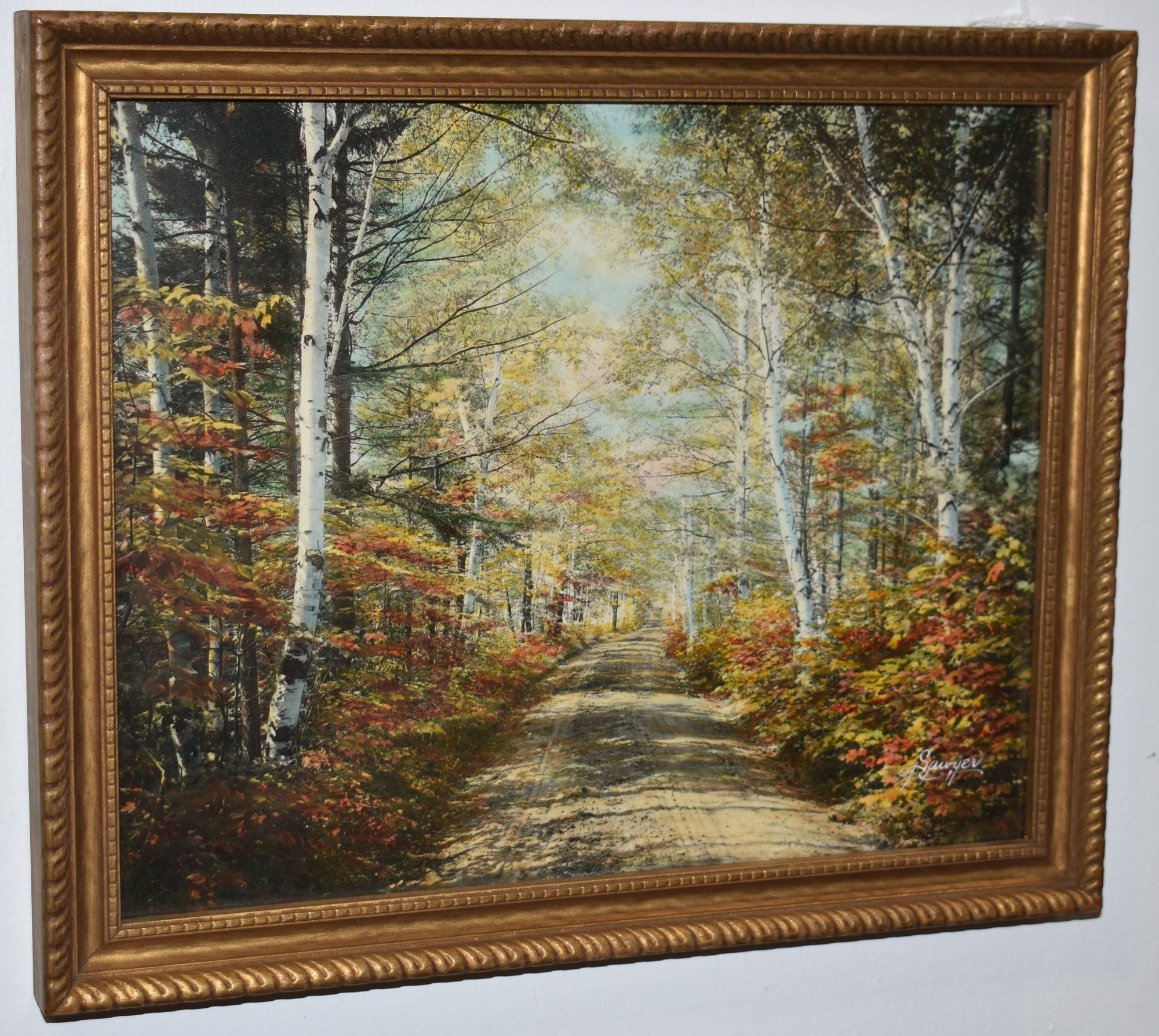 SIGNED SAWYER IN WHITE LOWER RIGHT - BACKING W/ THE SAWYER PICTURES CONCORD NH AUTUMNAL TAPESTRY MARKINGS ON BACK - 7 1/2" X 9 1/2" - WEAR