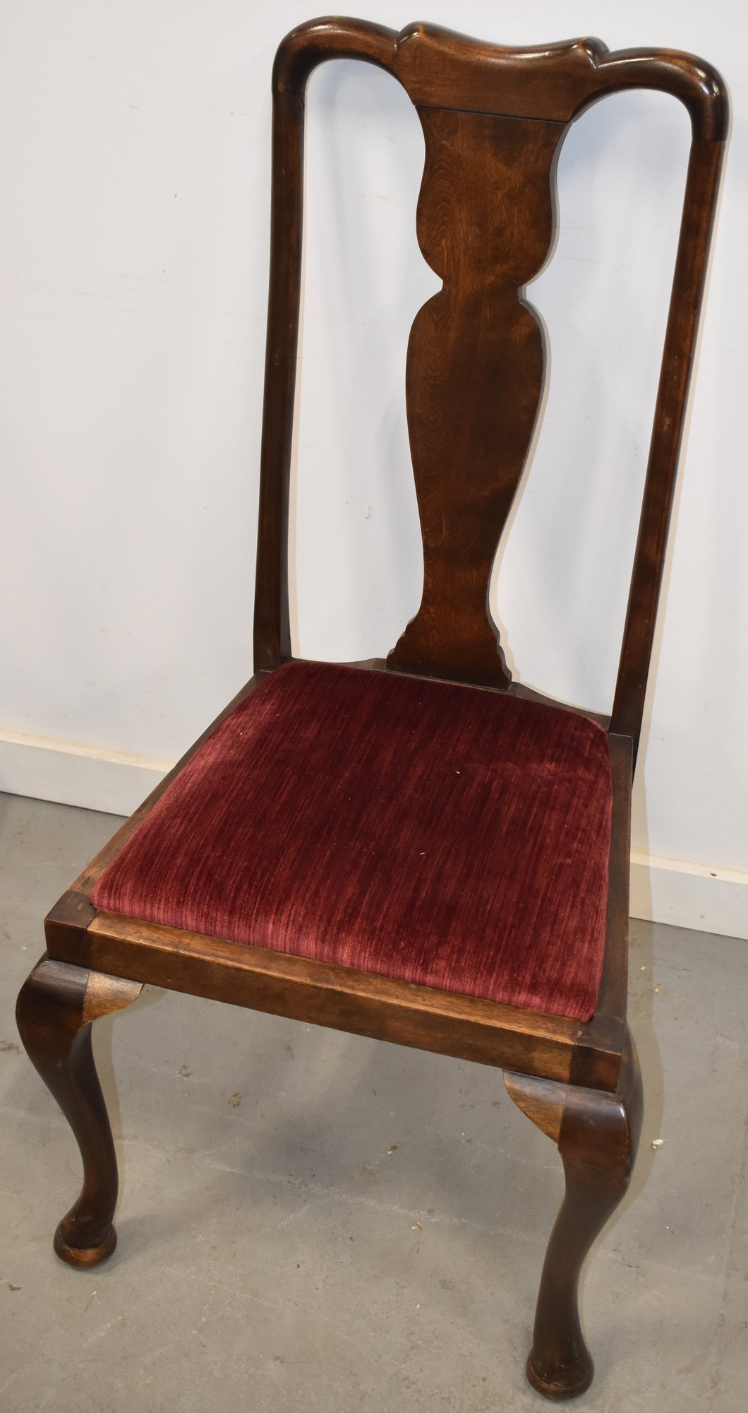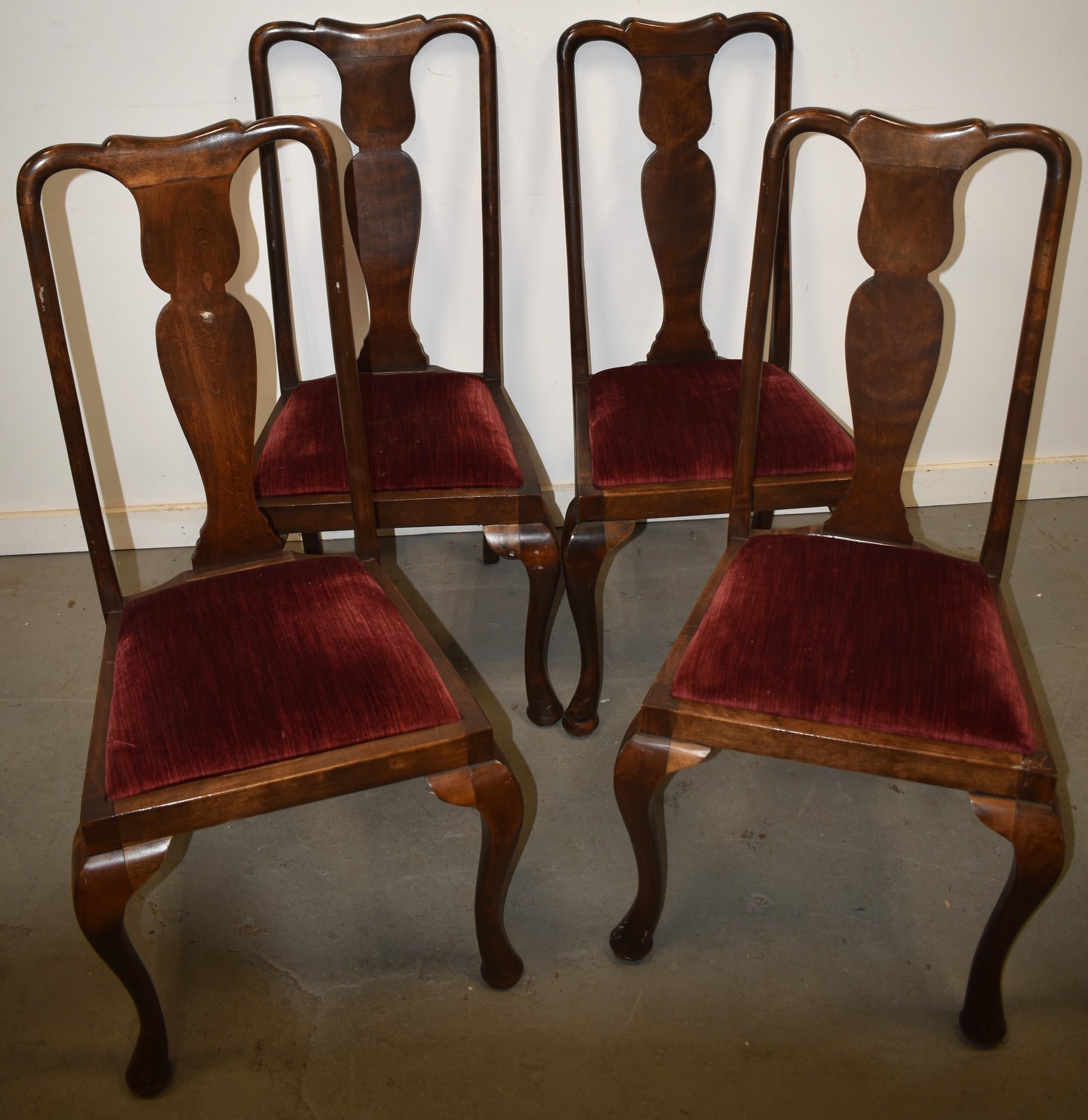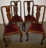 SET (4) QUEEN ANNE DINNING CHAIRS W/ RED VELVET DROP IN SEATS