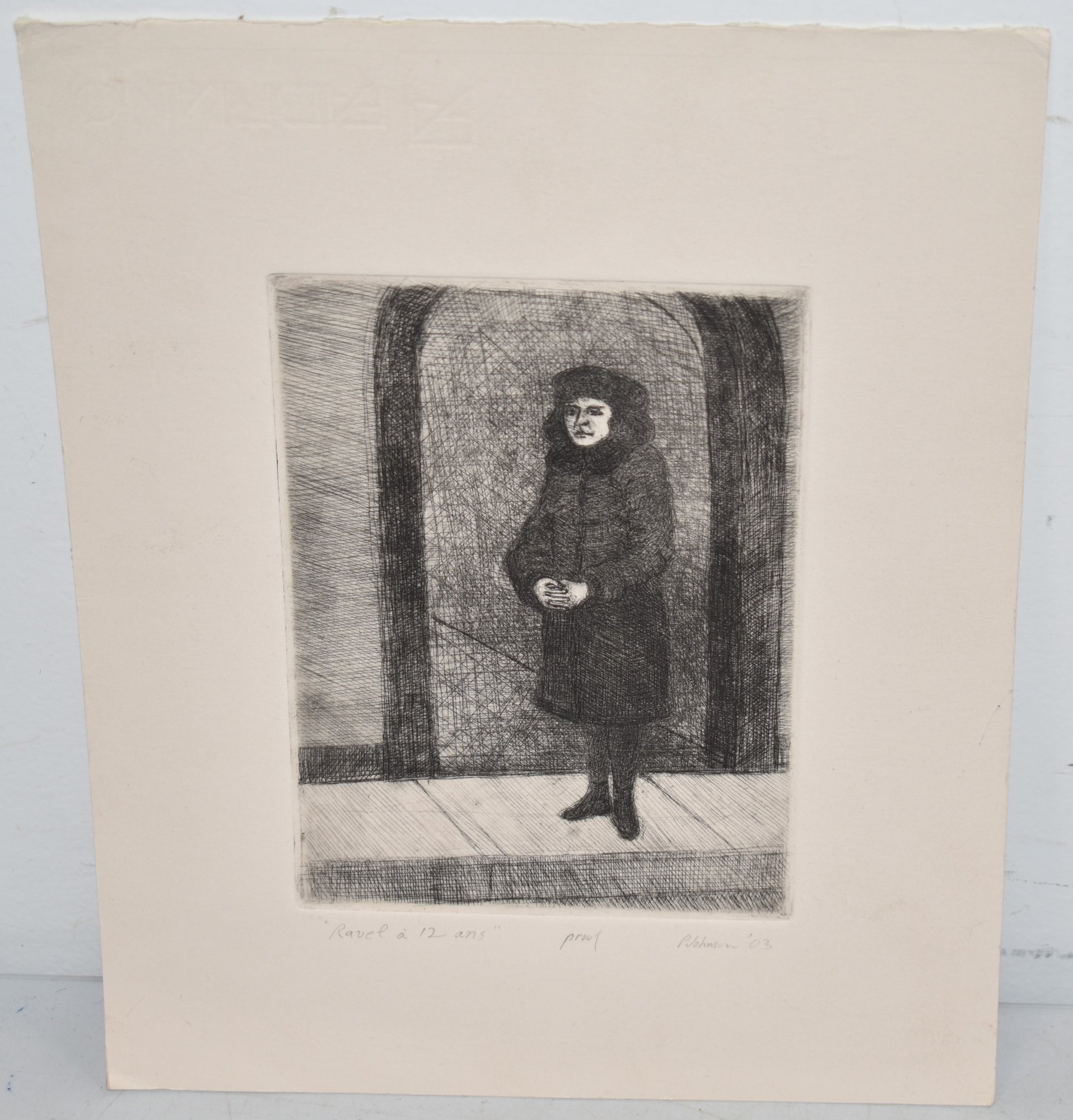 TITLED " RAVEL A 12 ANS" - PROOF SIGNED P. JOHNSON '03 IN PENCIL - 11 1/2" X 9" - UNFRAMED - WEAR