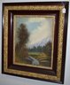VINTAGE PASTEL OF MOUNTAIN FORREST LANDSCAPE - SIGNED LOWER LEFT? UNCLEAR - 19 1/2" X 15 1/2 "SIGHT - FANCY FRAMED - TONING, SPOTTING, SOILING & IMPERFECTIONS