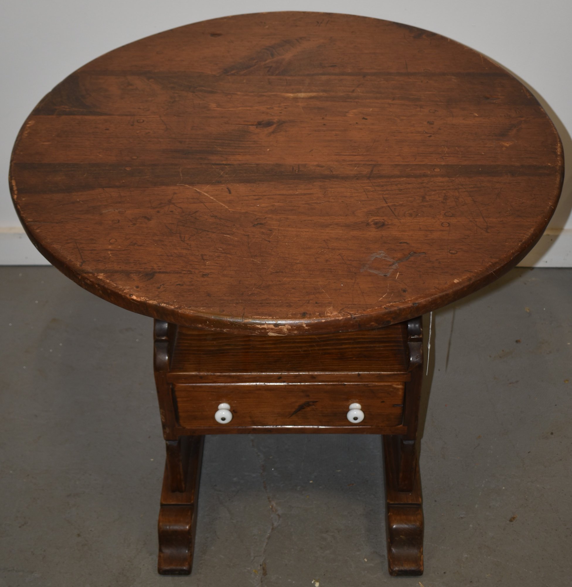 20TH CENT PINE FLIP - TOP HTUCH TABLE W/ DRAWER - 26 1/2" T - TOP 31 1/2" DIA - WEAR