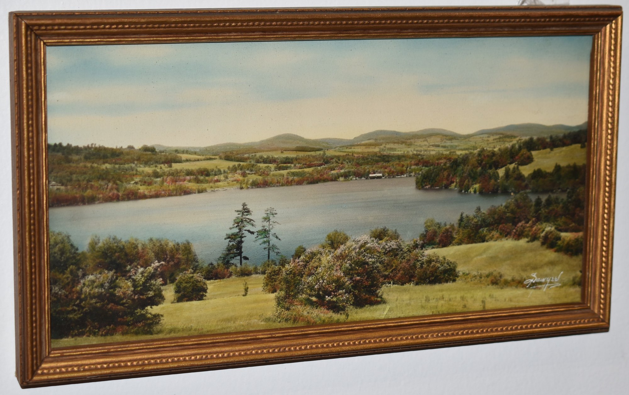 BACKING W/ THE SAWYER PICUTRES CONCORD NH - HARVEY LAKE MARKINGS - SIGNED SAWYER IN WHITE LOWER RIGHT - 4 3/4" X 9 1/2" - WEAR