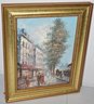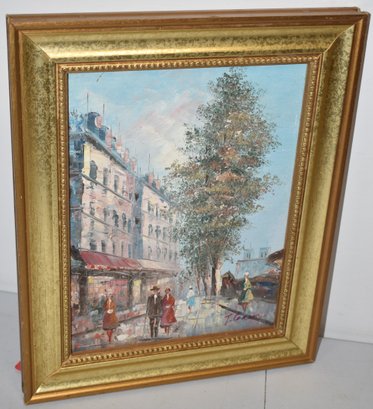 20TH CENT EUROPEAN STREET SCENE OIL PAINTING ON COMPOSITION BAORD - SIGNED T. CARSON LOWER RIGHT - 9 1/2" X 7 1/2" SIGHT - WITH GILT FRAME - WEAR & IMPERFECTIONS