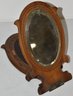 VINTAGE ITALIAN PARQUETRY INLAID 2 PART FLIP - OPEN DRESSSER MIRROR - INLAY BOTH SIDES W/ BEVELED INTERIOR MIRROR - 10 1/2" X 5 3/4" - MISSING INLAY & ONE CORNER BASE - WEAR & IMPERFECTIONS