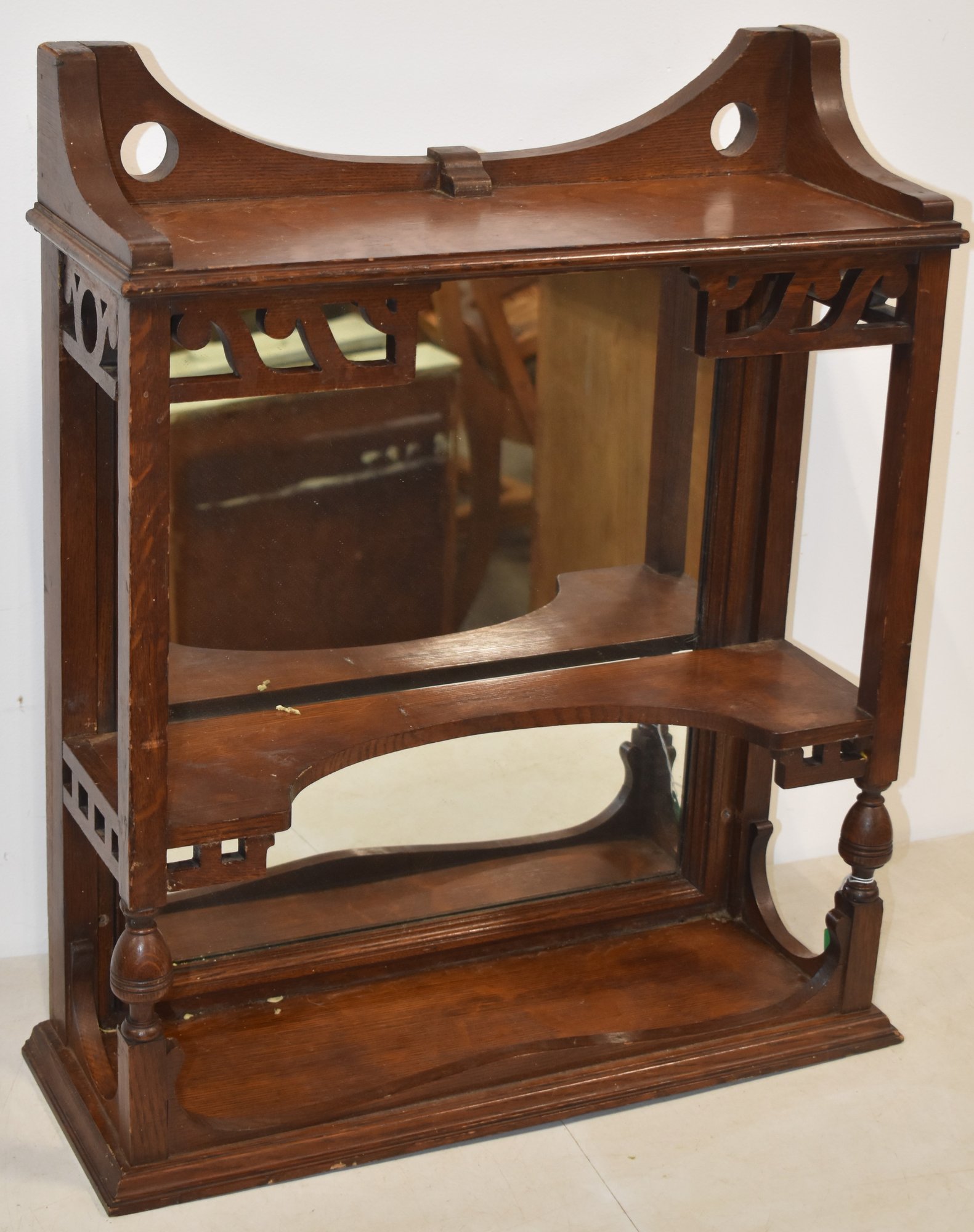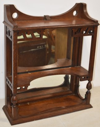 26 1/4" T X 20 1/4" W X 8" D - 2 TIER W/ MIRRORED BACK - WEAR & IMPERFECTIONS