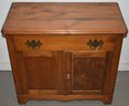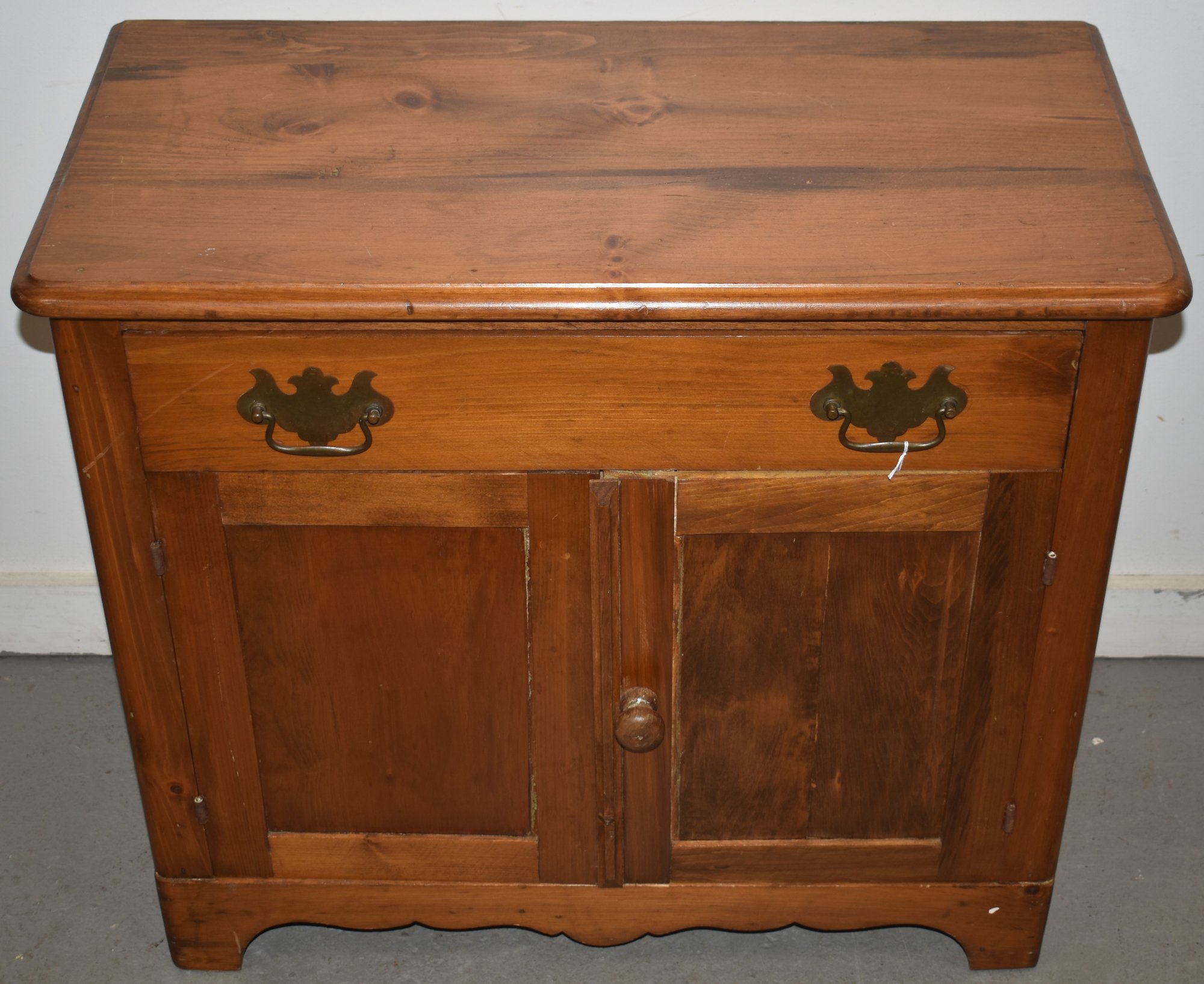 19TH CENT PINE 2 DOOR COMMODE IN NATURAL FINISH - 27" T X 30" W X 15" D - REPLACED HARDWARE - REFINISHED - IMPERFECTIONS