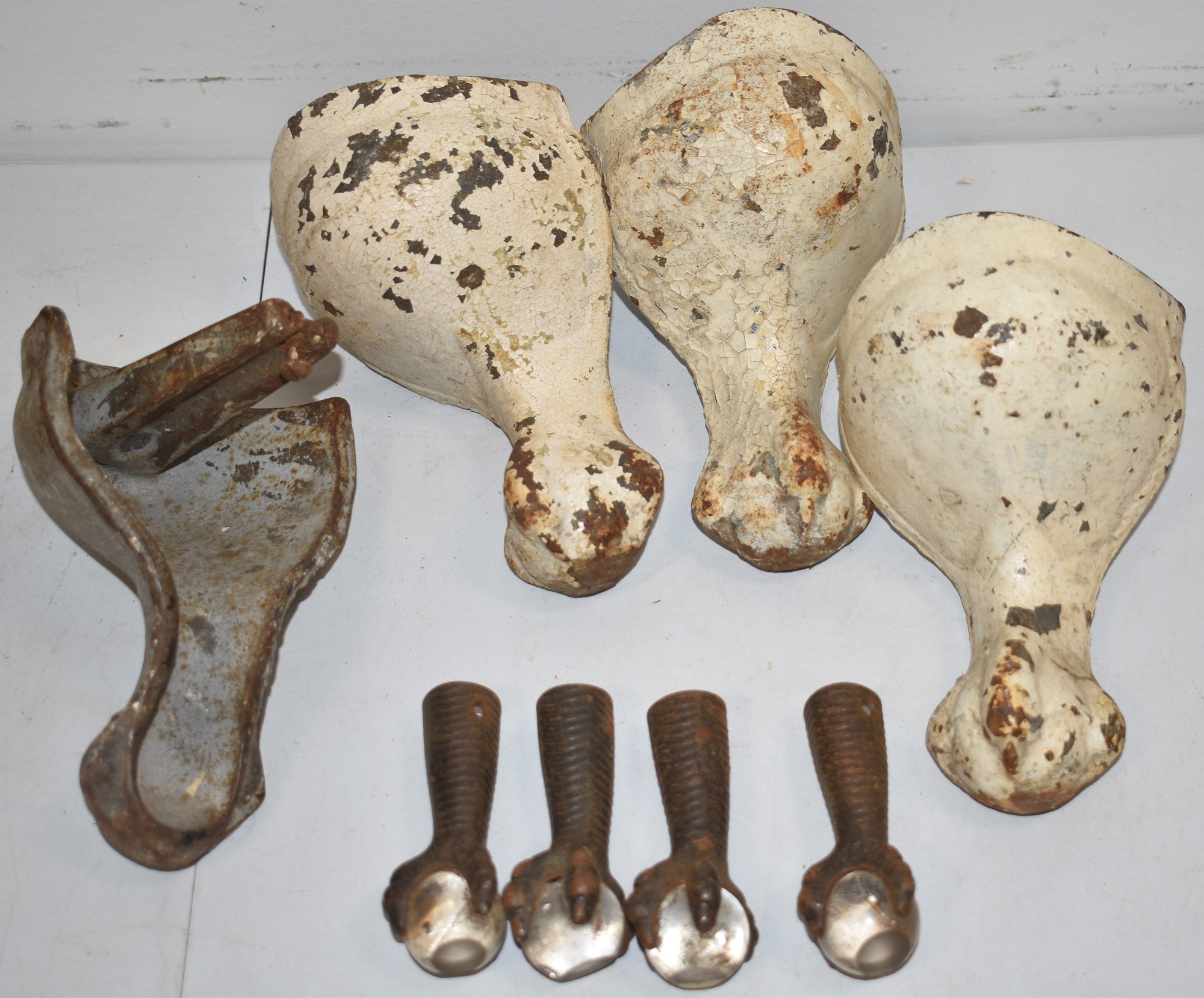 SET (4) CAST IRON TUB FEET & (4) BALL & CLAW FEET - WEAR