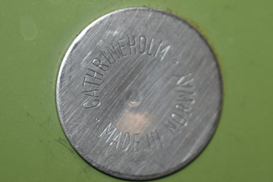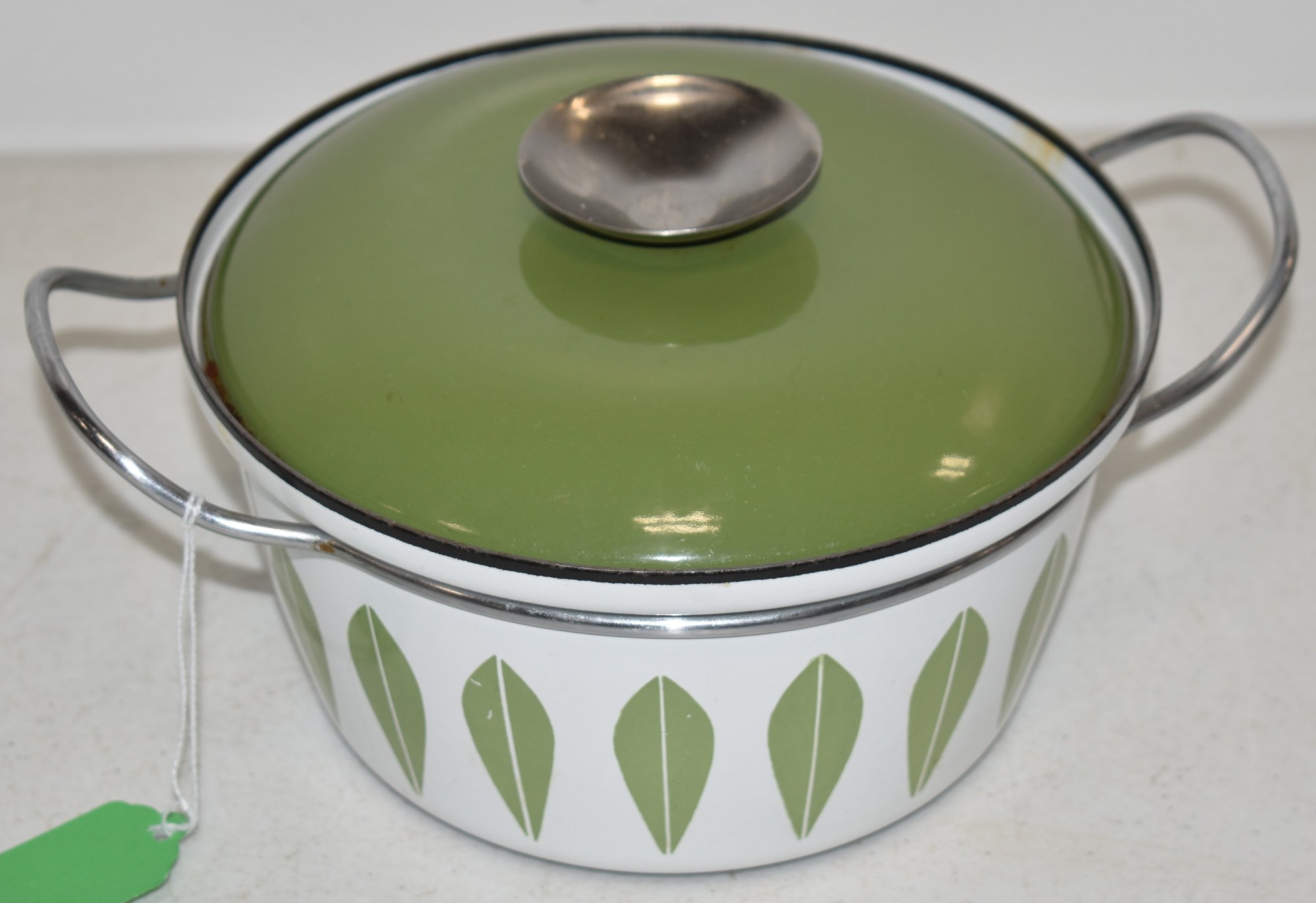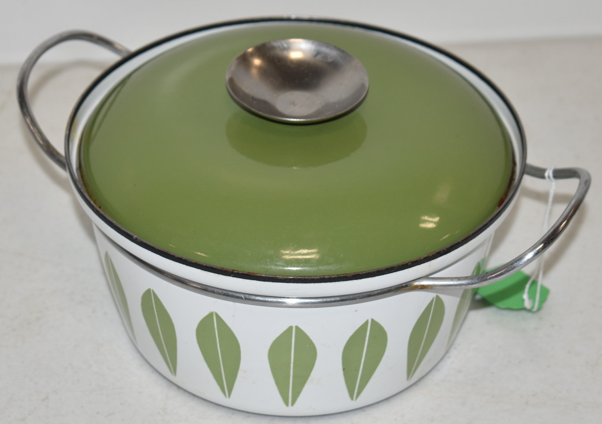 DECORATIVE COVERED CASSEROLE POT - 7 3/4" GREEN - CATHERINEHOLM MADE IN NORWAY - WEAR & IMPERFECTIONS