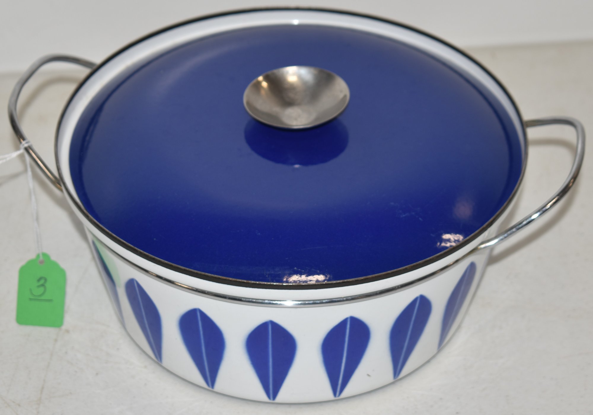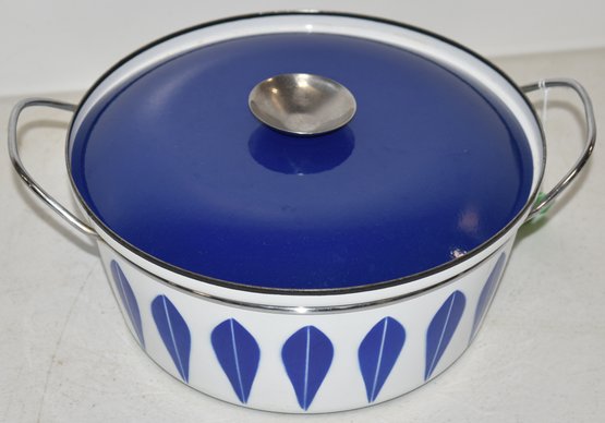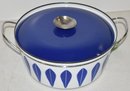 DECORATIVE COVERED CASSEROLE POT - 10 6/6" BLUE - CATHERINEHOLM MADE IN NORWAY - WEAR & IMPERFECTIONS