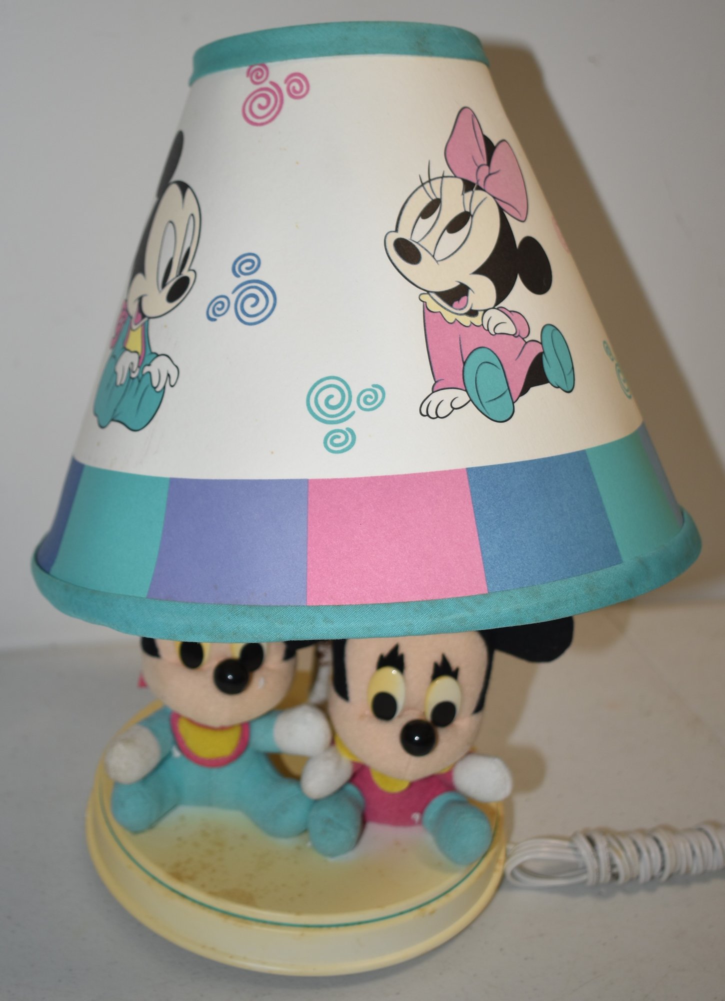 WALT DISNEY CHILDS LAMP W/ MICKEY & MINNIE PLUSH FIGURES BY DOLLY - DISNEY INC - WEAR