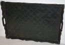 WOODEN TRAY W/ PAINTED TIN COVERING - OPEN HANDLED - 25" X 17 1/2" WEAR & IMPERFECTIONS